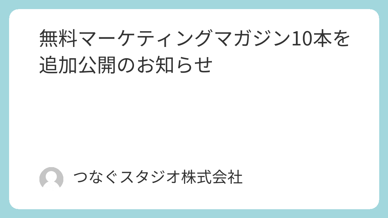 つなぐスタジオ株式会社(本社:東京都世田谷区、代表取締役:佐久間一己)は、地方企業の成長支援活動の一環として、2025年10月より提供を開始した「ローカルグローススタジオ」の無料マーケティングマガジンに新たに10本のコンテンツを追加公開するとともに、11月21日開催の「TSUKUBA CONNÉCT #82」にて事業構築に関するセッションに登壇いたしますことをお知らせいたします。